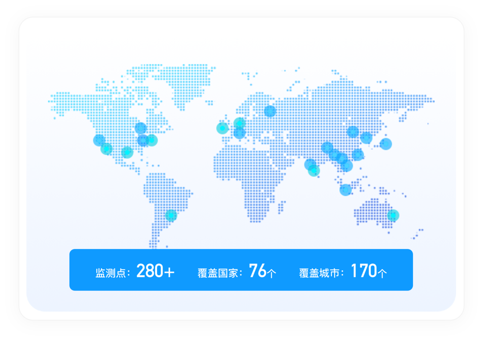 持续扩展的全球观测网络,目前已有280+监测点,覆盖76个国家,170个城市