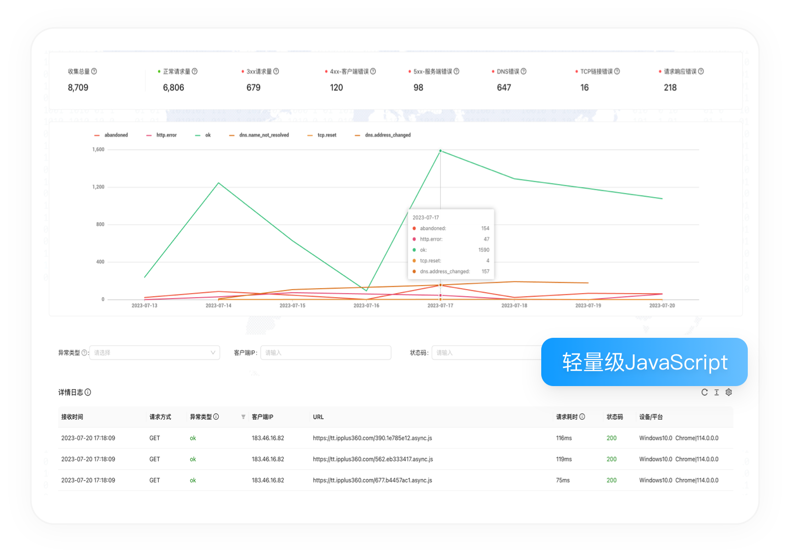监测网站重点性能指标,帮助优化网站性能,改善网站体验
